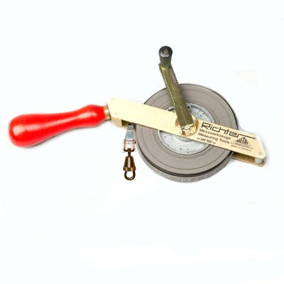 Richter IPM 464 20metre Tank Dipping Tape, Stainless Steel with Brass Frame and Wooden Handle for Hook on Weights